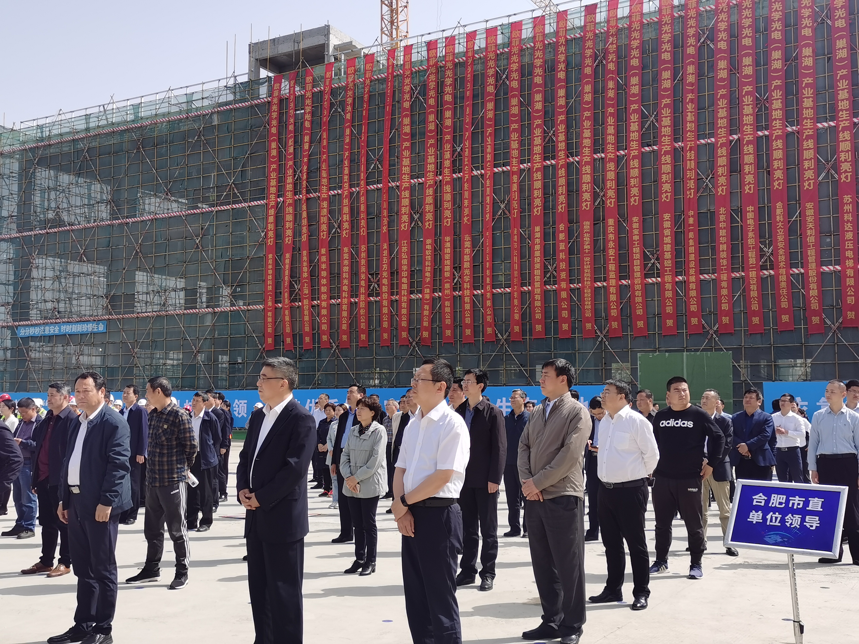 4月30日,建投集团所属蓝科公司代建的欧菲光光学光电(合肥)产业基地(以下简称“巢湖欧菲光项目”)生产线启动仪式在巢湖市黄麓镇隆重举行。安徽省委常委、合肥市委书记虞爱华,市长罗云峰,欧菲光集团创始人蔡荣军等领导出席仪式并共同见证生产线正式点亮,建投集团党委书记、董事长李宏卓参加仪式。