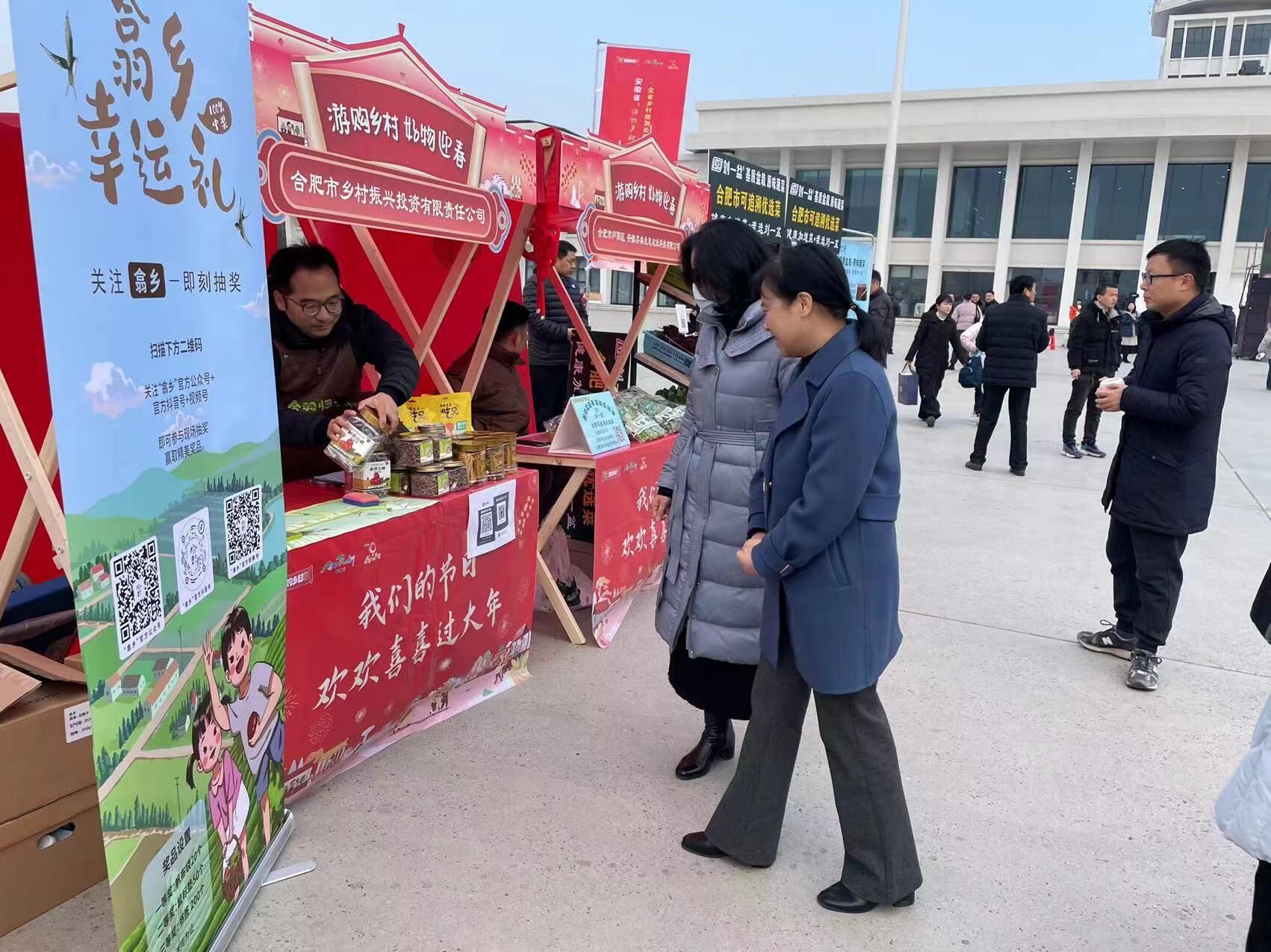 1月27日,安徽省文化和旅游厅、安徽省商务厅、安徽省农业农村厅共同主办的安徽省“游购乡村 好物迎春”年货市集——全省乡村旅游后备箱工程基地产品展示展销活动在合肥市骆岗公园航南广场举办。建投集团所属乡投公司携“合肥乡村”平台好物亮相此次活动。