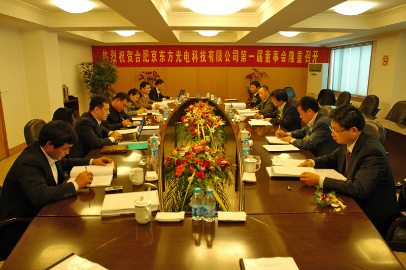 11月23日下午,合肥京东方光电科技有限公司董事会在市新站区管委会四楼会议室召开,集团公司董事长李武好、总经理陈军参加会议。会议由李武好董事长主持。