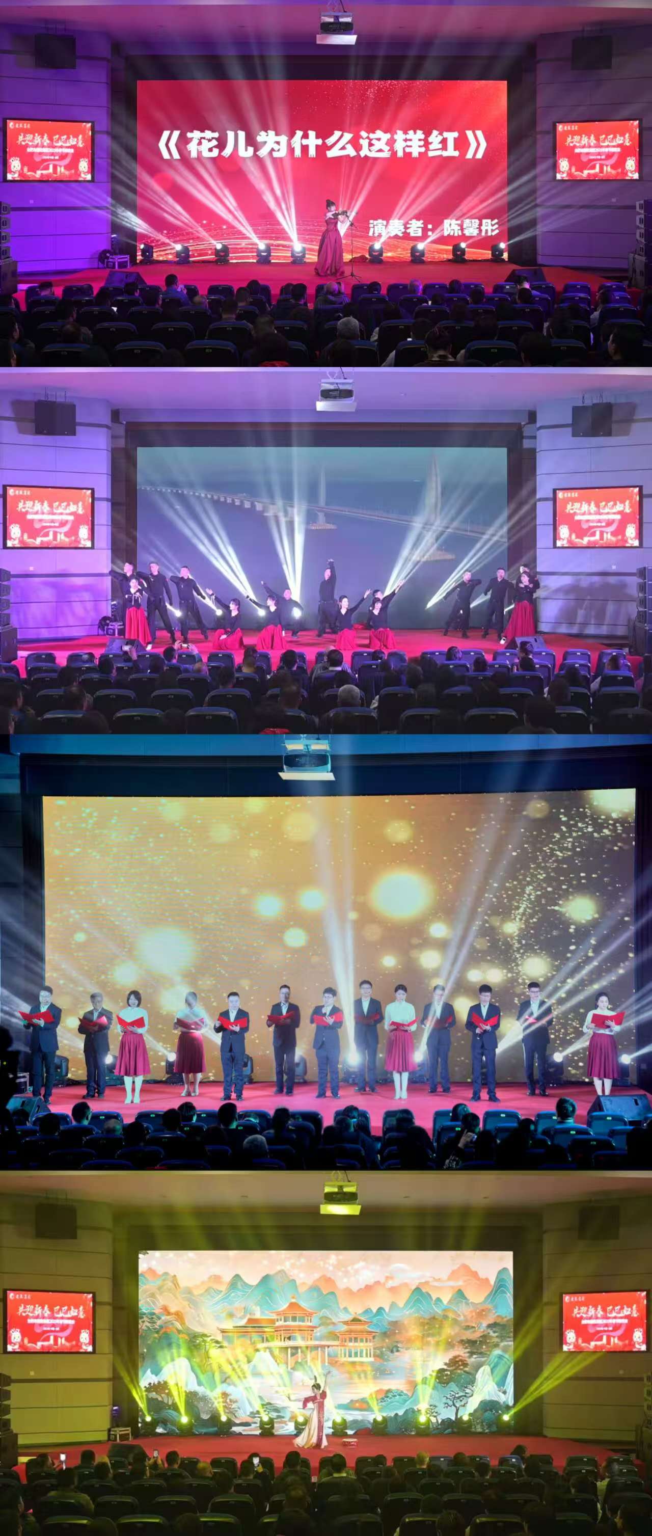 鼓声隆隆,彩旗飞扬,联欢会在气势磅礴的歌舞中震撼开场,瞬间点燃了全场气氛。随后,歌舞、朗诵、乐队、小品等20个精彩节目接连上演,城投公司合唱《梦想开出花》致敬城市建设者的辛勤付出和坚守,乡投公司小品《希望的田野》情景再现乡村“新农人”的执着与热爱,智慧交通公司退役军人职工参与的《舞韵军风》刚柔并济,2024年新员工歌舞串烧《I Believe》唱响了薪火传递之情。联欢会现场暖意融融,集体合唱婉转悠扬,个人独唱深情款款,歌舞表演典雅灵动,小品表演爆笑不断,朗诵节目深情传递爱国情怀。集团职工的娃娃军们也用自己的歌舞弹奏为联欢会带来了阵阵欢笑,一曲充满纯真童稚的儿童合唱《歌唱祖国》更将联欢会气氛推向高潮。