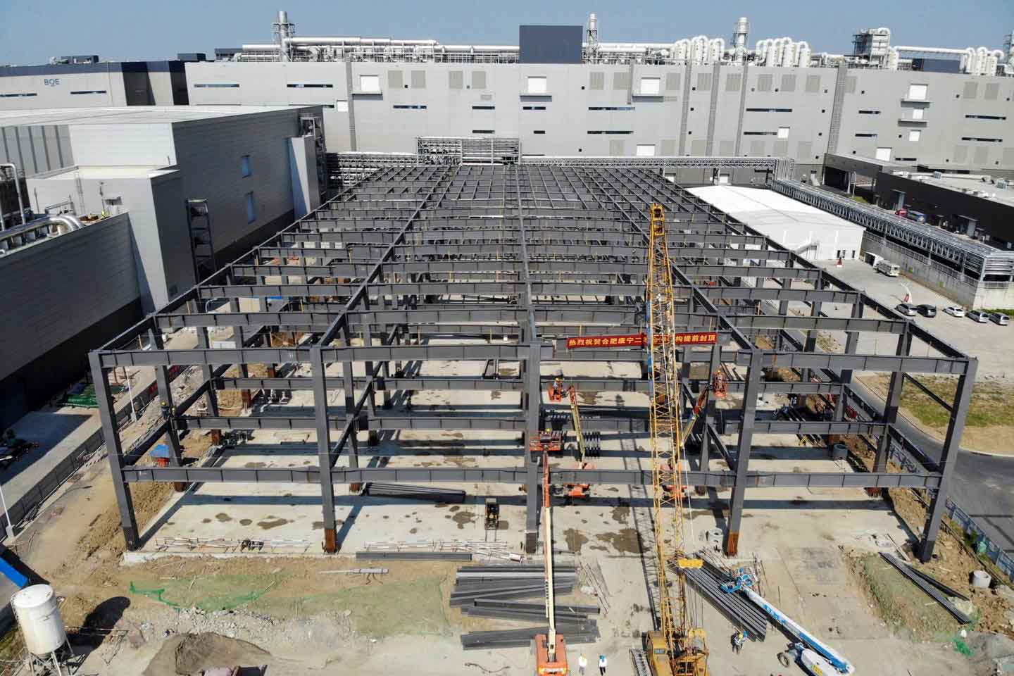 康宁玻璃基板设施建设项目二期主体钢结构提前封顶