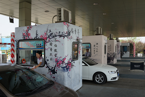 合肥绕城北环高速双墩收费服务站是合肥市北部交通的重要出入口,连接沪陕、沪蓉、蚌合、合徐等高速公路,日均进出口车流量超过1万台,共设有四进六出九座岗亭,也是重要的服务窗口。交投公司充分发挥收费服务站车流量大、辐射面广的特点,以廉政内容为主题,采用“莲、松、竹、梅、兰”的形象贴画,对收费亭进行美化升级,并命名为“清风亭”。同时,依托服务区内“园、厅、廊、墙、室”等设施,设置形式多样、内容丰富的廉政标语、贴画,创建了振风林、浩然亭、净思馆、百廉窗、廉政廊等廉政文化景观,与自然景观交相辉映、相得益彰,将整个服务区打造成有文化有内涵的廉政文化教育阵地,大力提升司乘人员视觉享受,同时潜移默化中传递廉政理念,形成双向多边互动的动态格局,切实增强廉政文化的辐射力。